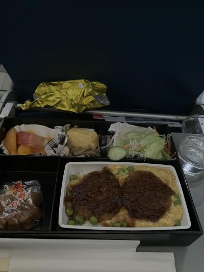 マニラーデンパサール間の機内食。まさかのダブルパスタ。うん、、という味...