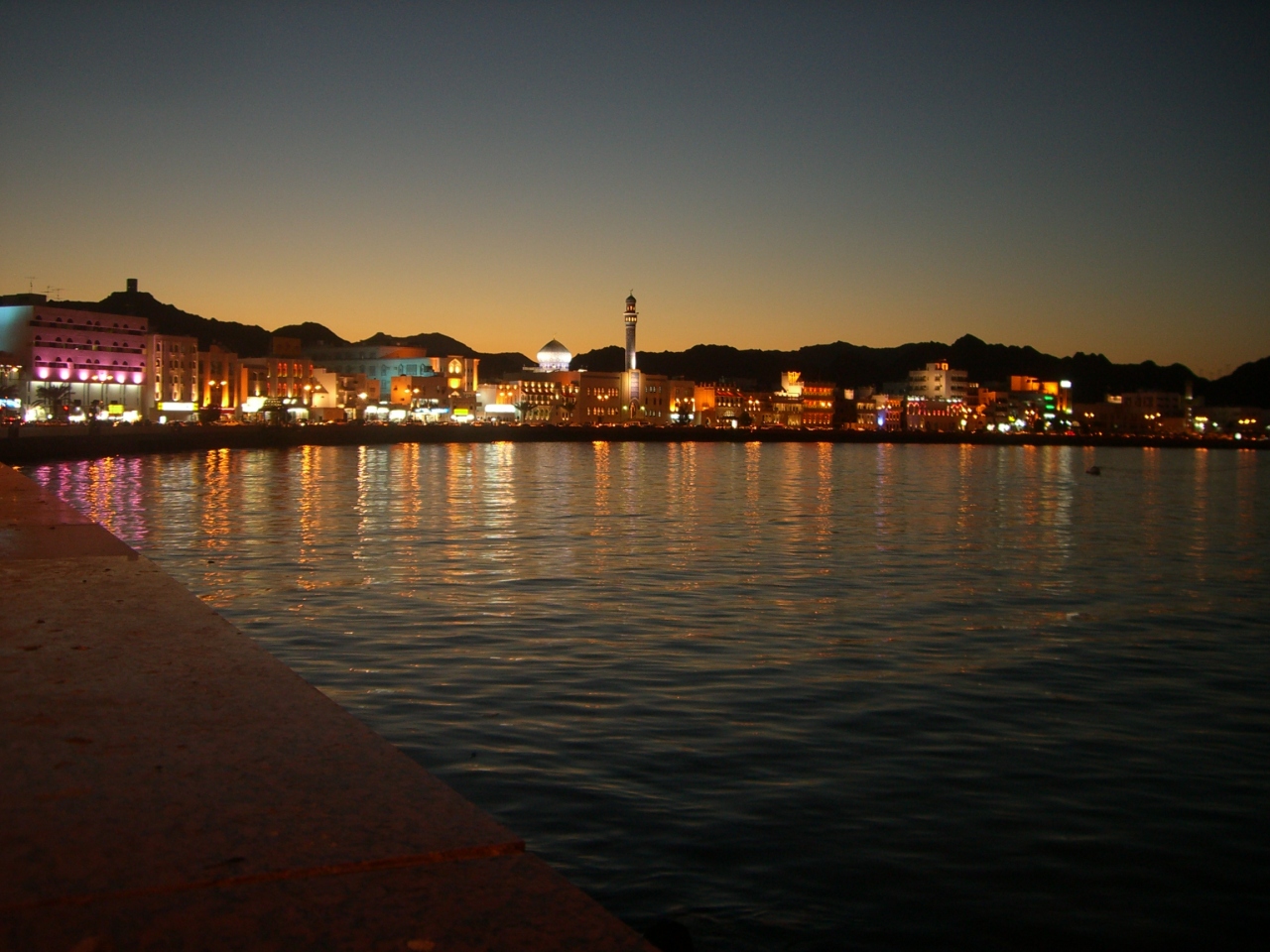 マスカットのコルニーシュというエリアは、海岸沿いで夜はすっごい景色がきれい。