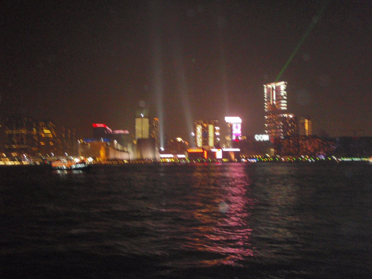 香港の夜景定番スポットの一つシーサイド・プロムロード。ホテルで食べた後,シーサイドから見た。あちらこちらのビルからライトが・・・ものすごくきれいである。船に乗ってみると両方向から見える。大体8時くらいから30分程度この景色が見ることができる。おすすめである