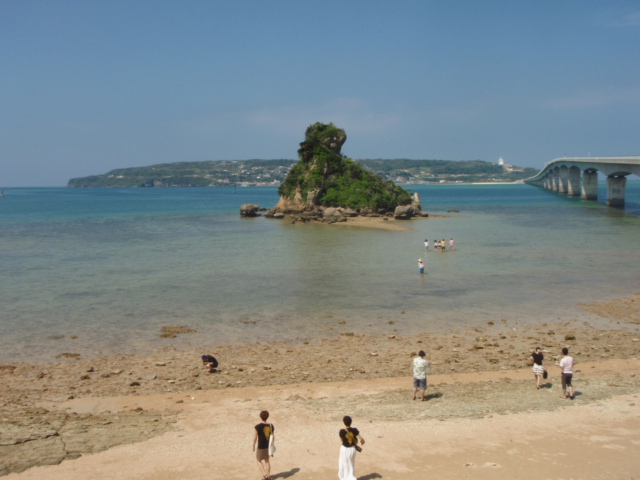 沖縄の海はきれいである。特に小宇利橋付近の海はマリンブルー色になっている。橋の近くには駐車スペースがあり,休日には満車になる。晴れた天気に見る景色は最高である。橋は2キロくらいあり,車で行くとあっという間にすぎる