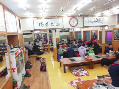 韓国の方も多くて結構賑わっていました。わいわい、がやがやした雰囲気の中で、ジュウジュウ、もぐもぐ食べて、おいしかったです。