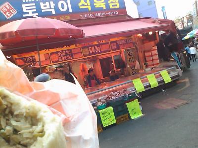 マンドゥをかじりながら、お土産探しも楽しいです。キンパ@1500wや焼栗@3000w、マッコリもついでに買って、朝ご飯ってのも、たまらないですね。