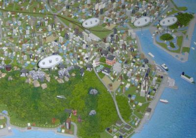 公園のかなた、左手斜めの方に見えている、大きいホテルです。
