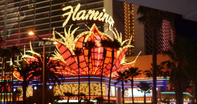 ストリップのフラミンゴに宿泊したのは、魅力的なネオンのホテルに泊まりたかったのと、ベラジオの噴水ショー・TIの海賊ショ−・ミラージュのボルケーノに歩いていけるロケーションの良さからです。部屋はコネクティングルームになっているのか?ドアがありましたが、音も何も問題なかったです。