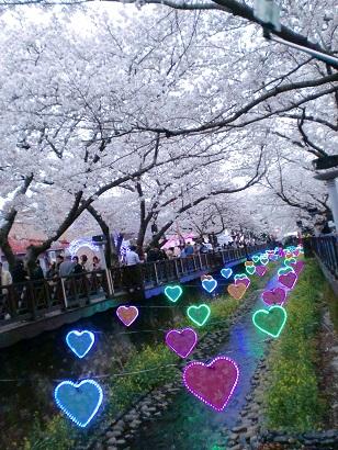 ムグンファ号に乗ってプサンの釜田駅から鎮海駅へ、桜祭りと軍港祭りに行ってきました。韓国ドラマ「ロマンス」の撮影地、川沿いを約1,5キロを散歩してきました。桜もきれいでしたが、ライトアップもいい感じでしたよ!