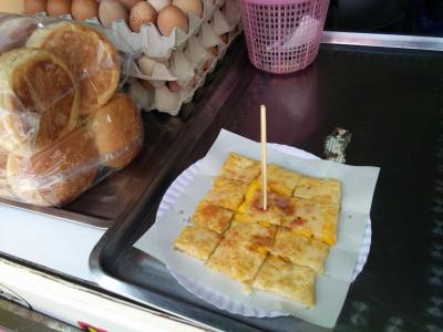 ビーチの帰りに、おやつのパンケーキを買います。ホテルのちょっと手前の小...