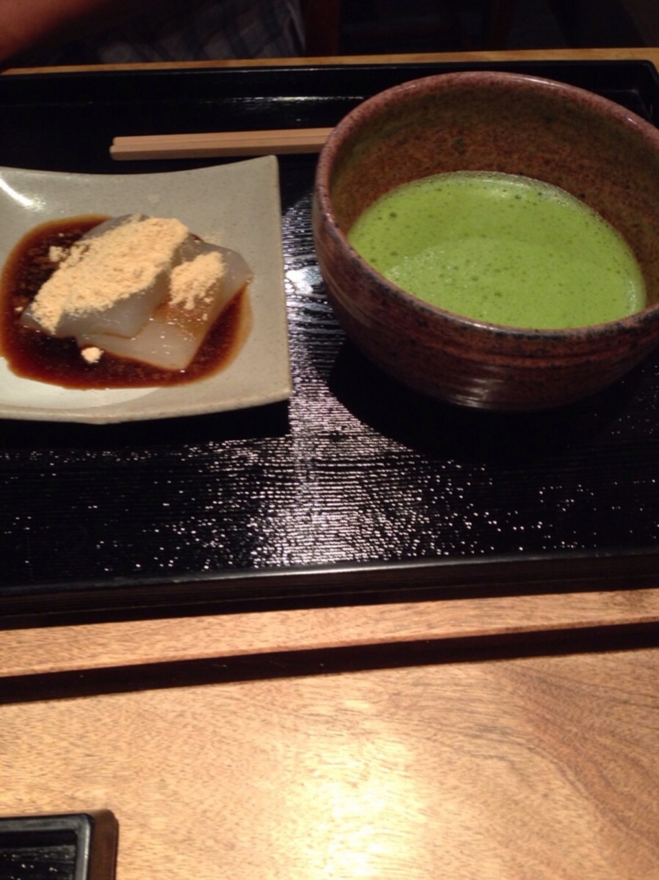 まず店内で抹茶と葛餅のセットと