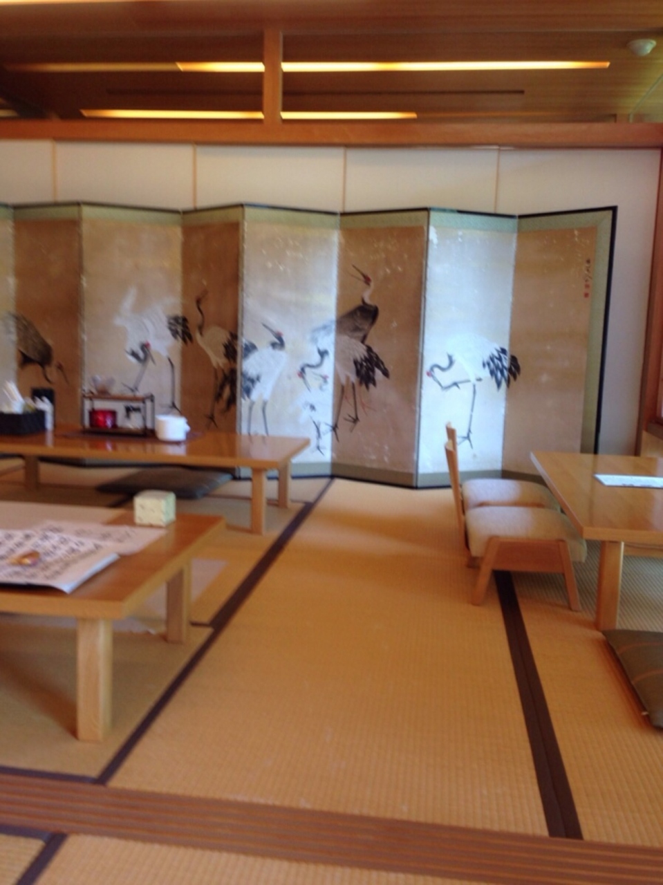靴を脱いで綺麗な畳み敷きのカフェに