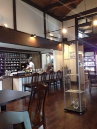 大きな窓からお庭を臨む静かなカフェです