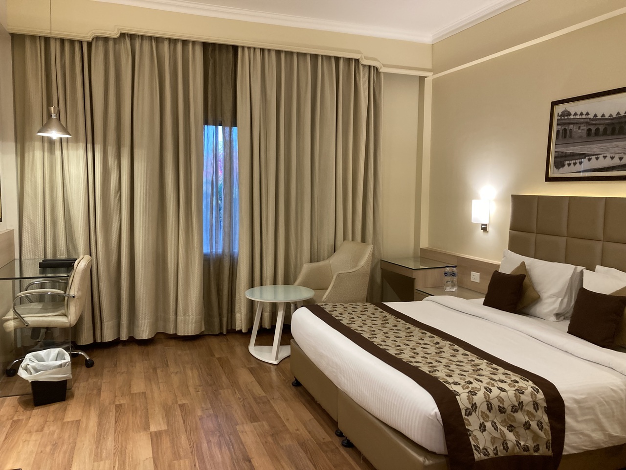 ニューデリー空港に19時頃到着して、入国手続きをして、駐車場からバスに乗ったが、道路が大渋滞で、ホテル迄1時間半もかかった。ホテルの部屋には、バスタブがなかった。9時間機内にいて、足がパンパンだから、本来なら、湯船に浸かって、マッサージをしたかったが、残念だった。朝食は、カレーメインのバイキングだったが、味はどれも今一つだった。