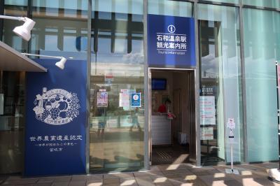 石和温泉駅の改札を出て、1階に降りてすぐの所にあり、ここで自転車を借りました。電動ではなく、普通の自転車だと無料で借りられ、1000円のデポジットは鍵を返す際に戻りました。フロアの中には、ワインのサーバーも設置されていました。