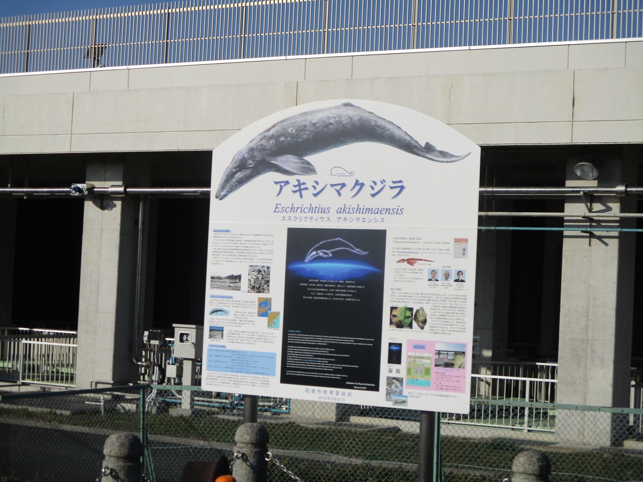 昭島と言ったらクジラだと夫から聞いていましたが、初めてくじら公園に行って、この場所を知りました。日野から多摩川大橋を渡って、多摩川ぞいを走っていて見つけました。この辺りはかつては海で、ここでクジラの化石が見つかったということでした。200万年も前のお話です。