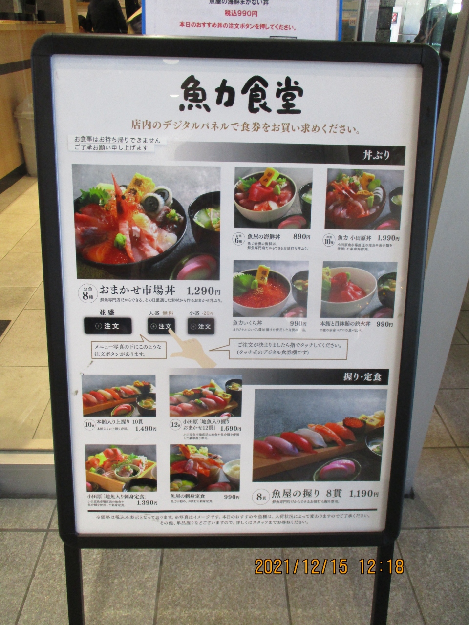 魚力は我が家の近くのスーパーにもあり、中央線の立川駅、昭島駅、千葉駅周辺にある店舗を利用したことがあるので、親しみがあって立ち寄りました。2階にも店舗がありますが、こちらの1階の方が庶民的で入りやすかったです。
