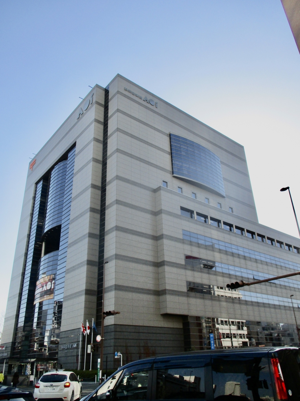 徳川家康公の像のすぐ前に建つ大きなビルの中の七階から十階でした。八階がコンサートホール1階で、九階がコンサートホール2階でした。コンサートホールにはパイプオルガンが設置されていて、素敵なつくりでした。郵便局の上です。