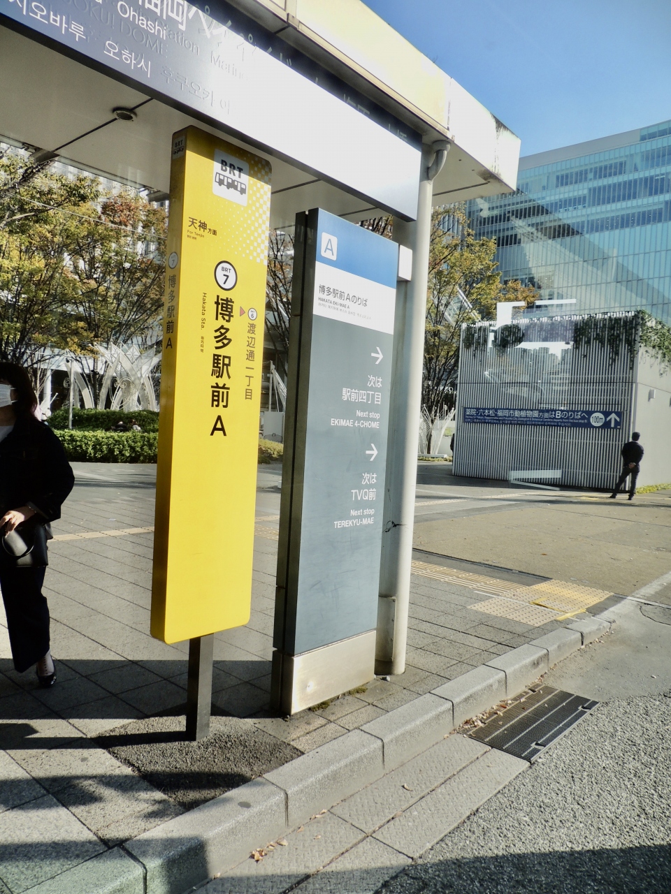 ガイドブックには福岡都心「100円バス」という紹介があって、キャナルシティラインも100円で乗車できると書いてあったのですが、いざ乗車しようとしたら、乗り場にいた案内係の方に4月に値上げして今は150円ですと言われた。