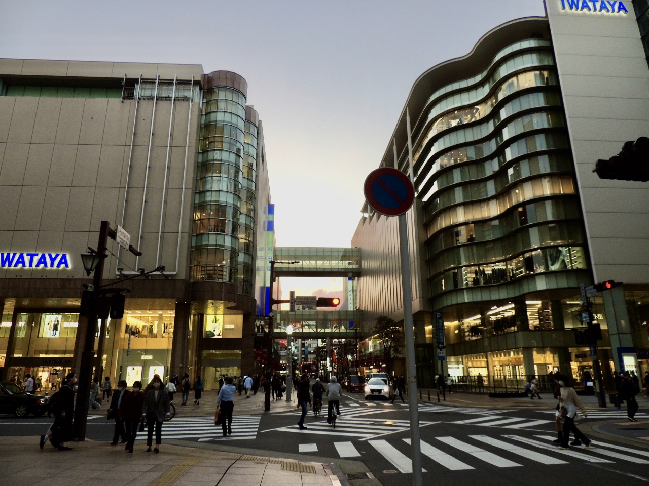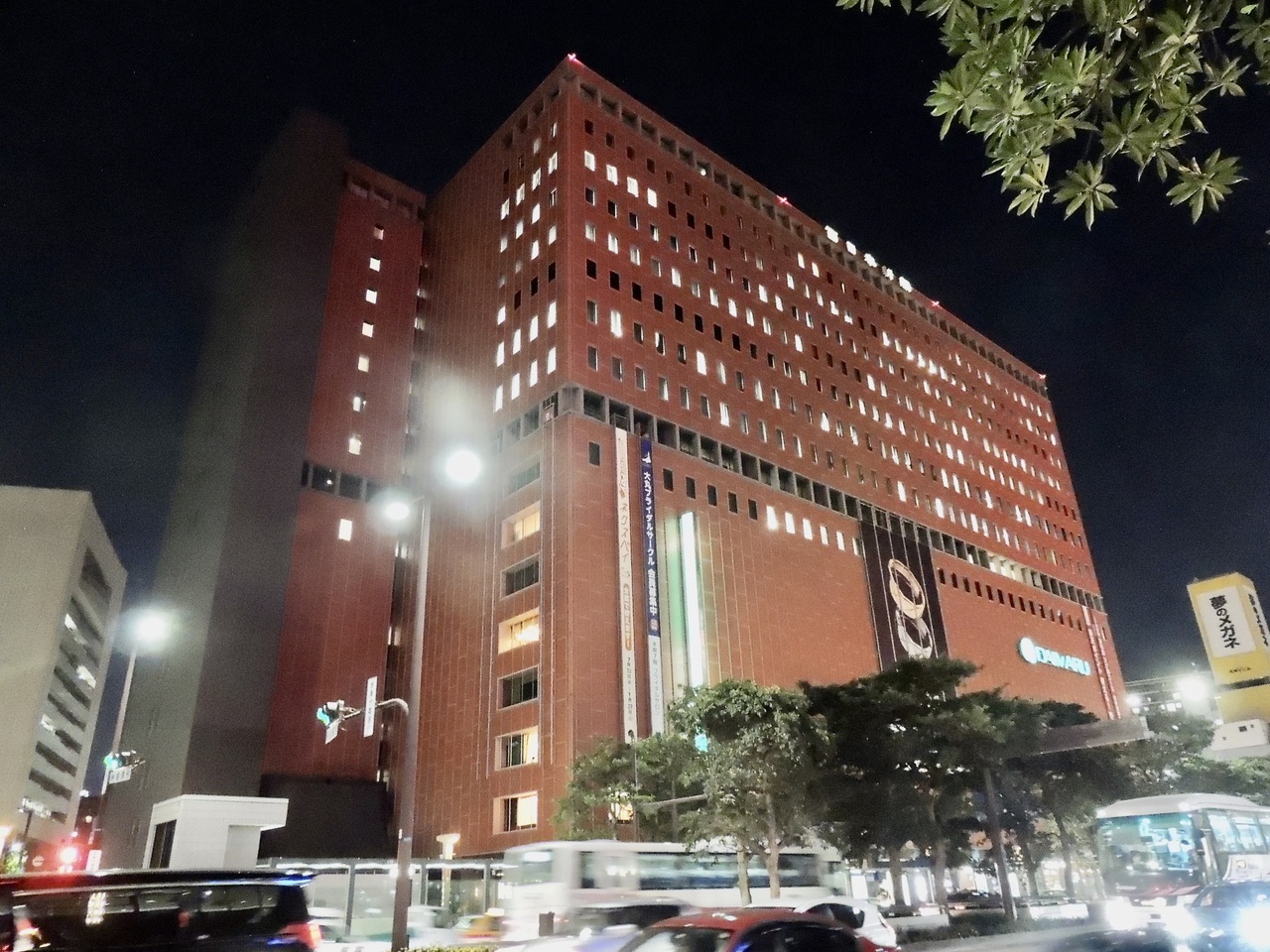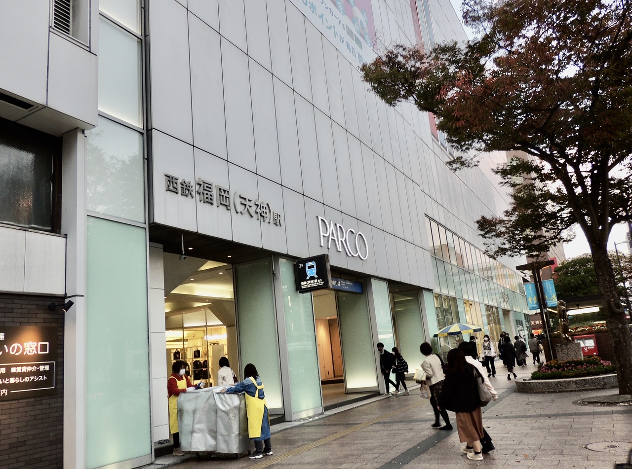福岡空港から地下鉄空港線で天神駅で降りればいいし、西鉄の天神駅が最寄りだし、周りには三越、大丸、岩田屋などのデパートがあり、パルコなどのショッピングモールがあるし、福岡の一等地のど真ん中にあり、大変便利でした。