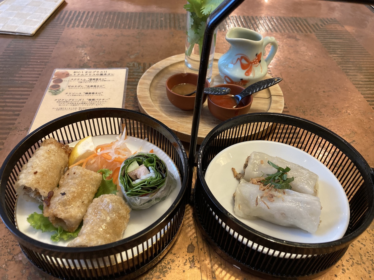 ランチにたまにはベェトナム料理が食べたいなと考えて、ネットで探して行ってきました。ランチセットが1650円で、3種類の春巻きとフォーとベェトナムコーヒーがセットになっていました。盛り付けや味付け、量など女性におすすめします。