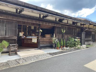 長野と言ったら、おやきが有名で、塩尻とか松本、長野の駅周辺でもよく買い物するのですが、こちらは、コーヒーと一緒に色々な種類を販売しています。全商品自家製の手作りで、妻籠宿でのおやき屋さんはこちらの一軒だけだそうです。