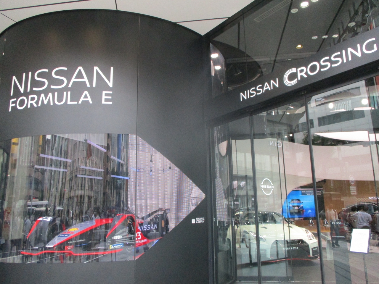 銀座の1等地、三越や和光のある交差点の角にありました。最先端技術の車がみられる車好きにはたまらない場所ですが、コロナ禍ということもあり、休日は日産アリアlimited展示のみの営業で、事前予約をとる必要があります。