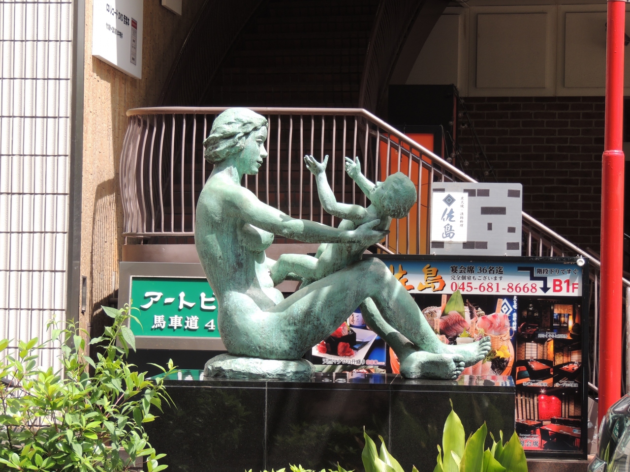 アイスクリーム発祥の地というので、アイスクリーム屋さんを探して歩きましたが、お店はなくて、ビルの前に母子像があっただけでした。アイスクリームは明治2年に、氷水店の店主がここで販売を始めたそうです。この像はアイスクリーム教会が寄贈したものだそうです。