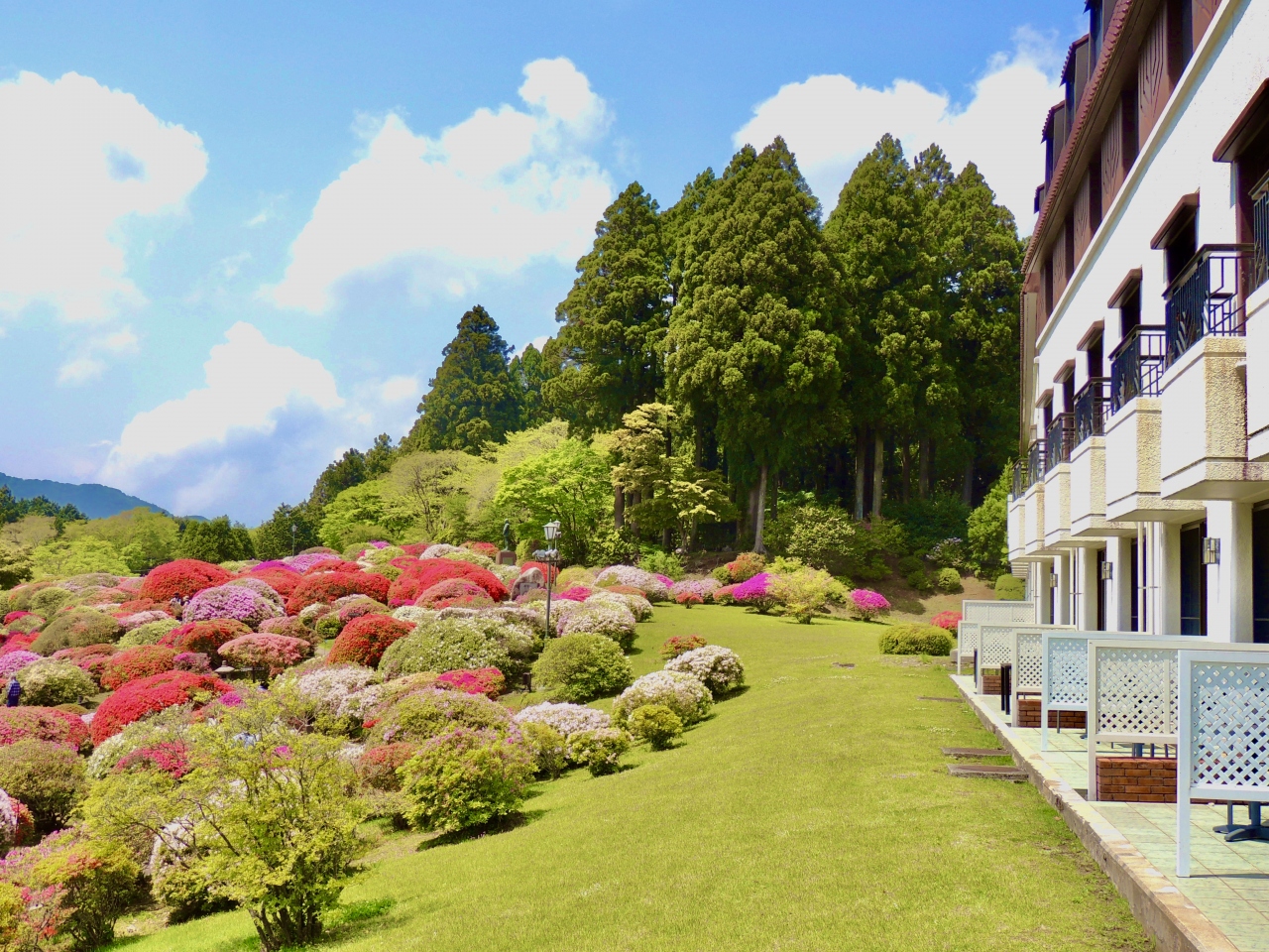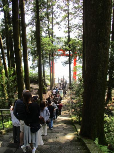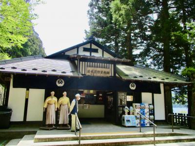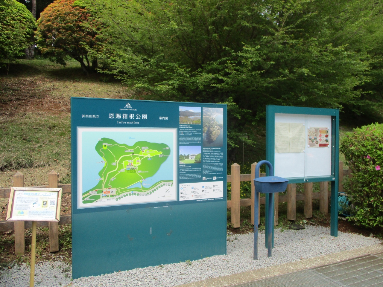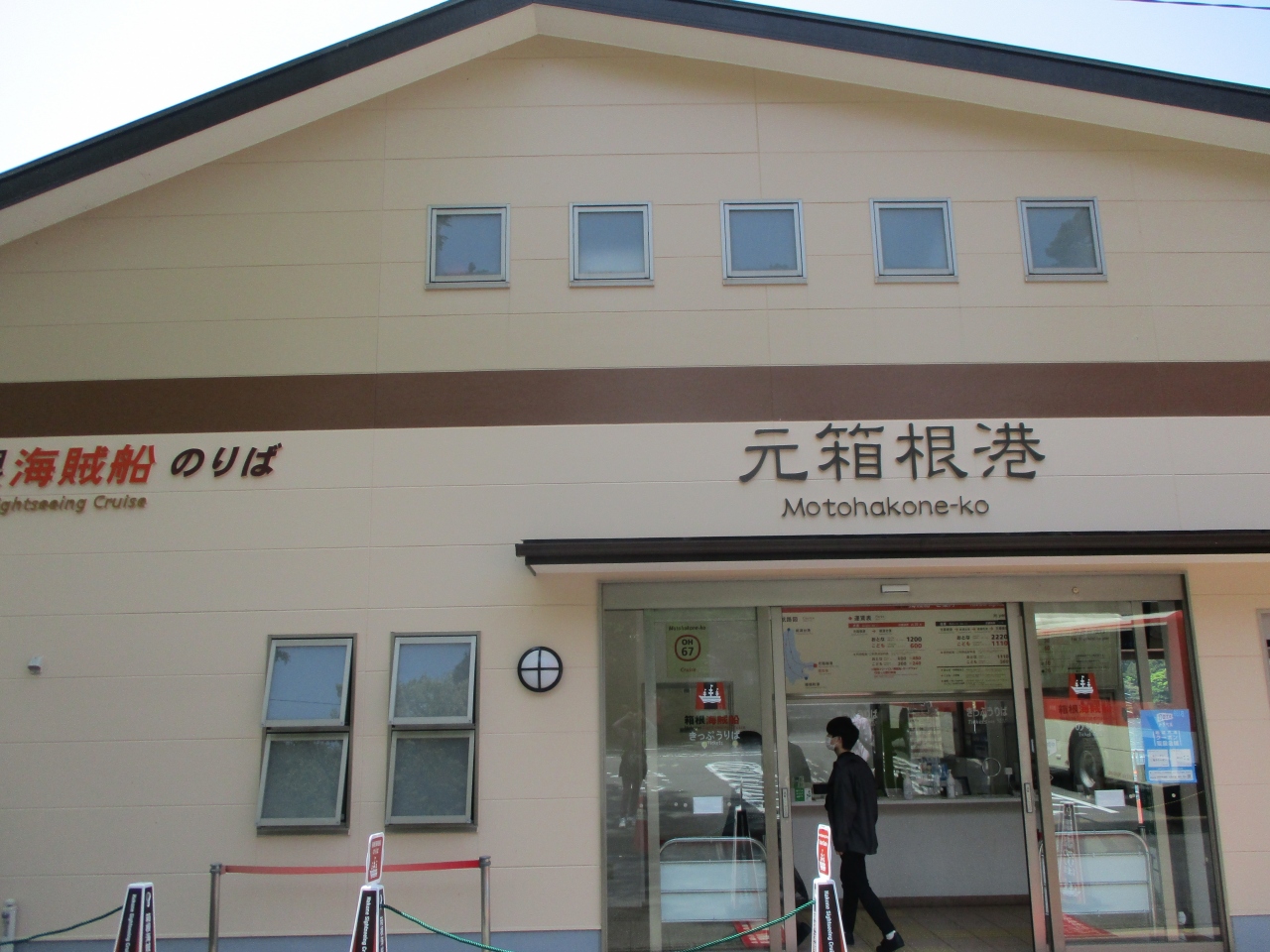 今回は山のホテルでツツジを鑑賞するのが一番の目的で、ついでにその周辺を見る程度でよく、コロナ禍の日曜日だったので、一番安く、一番空いているルートを考え、小田原駅から箱根旧街道1号線きっぷを購入し、小田原駅から乗車しました。途中この案内所前のバス停に立ち寄りましたが、乗車する客は1組だけでした。
