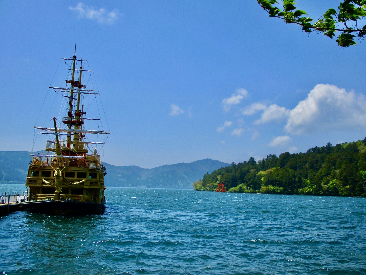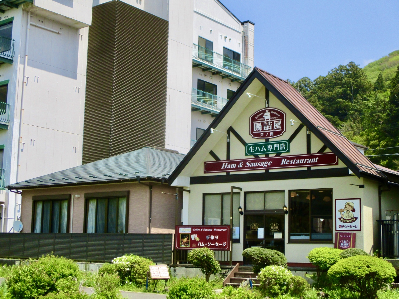 元箱根港近くで、ガラス張りの店でした。1階がベーカリー、2階がカフェで、芦ノ湖の海賊船などを眺めながら、美味しいパン、サンドウィッチなどをいただくことができます。日曜日の昼過ぎに立ち寄った処、若い観光客が大勢利用していました。