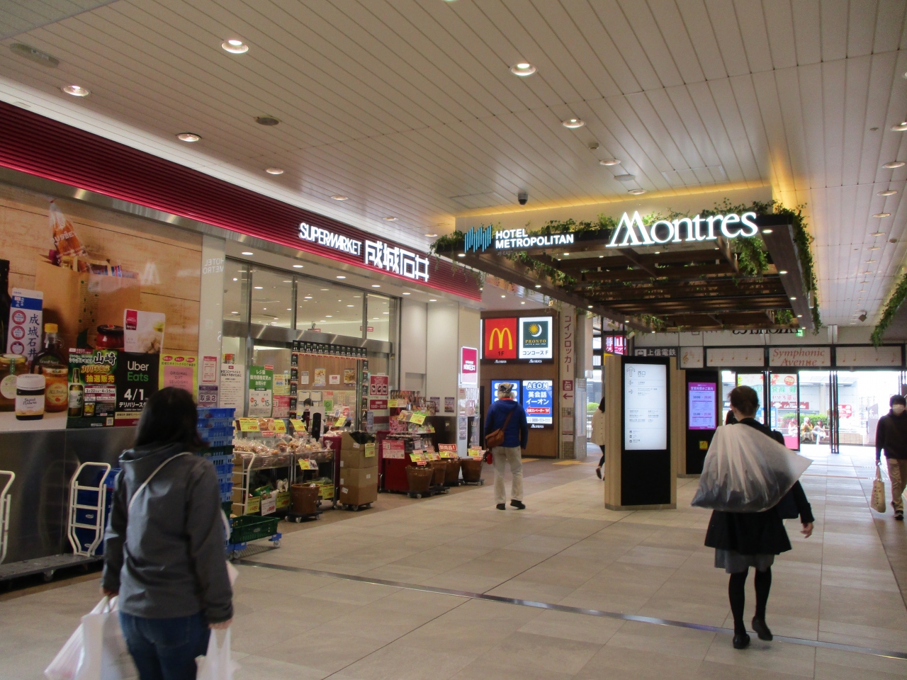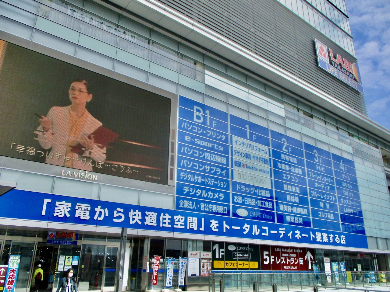 家電量販店のヤマダデンキのビルが改札を出てすぐのところにありました。地下1階から5階まであって、家電だけでなく、家具やインテリア、日用品、化粧品などのドラッグストアや、子供のおもちゃ、飲食店などが入っていました。