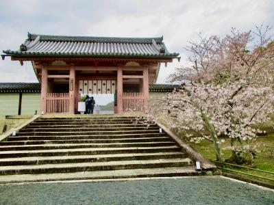 二王門を入り、左手で拝観受付で料金を払い、真っ直ぐ進むとありました。金堂も五重塔も御室の桜もこの先にありました。御殿は二王門を入って受付近く、左手に入り口がありました。中門の周りは染井吉野などが満開でした。