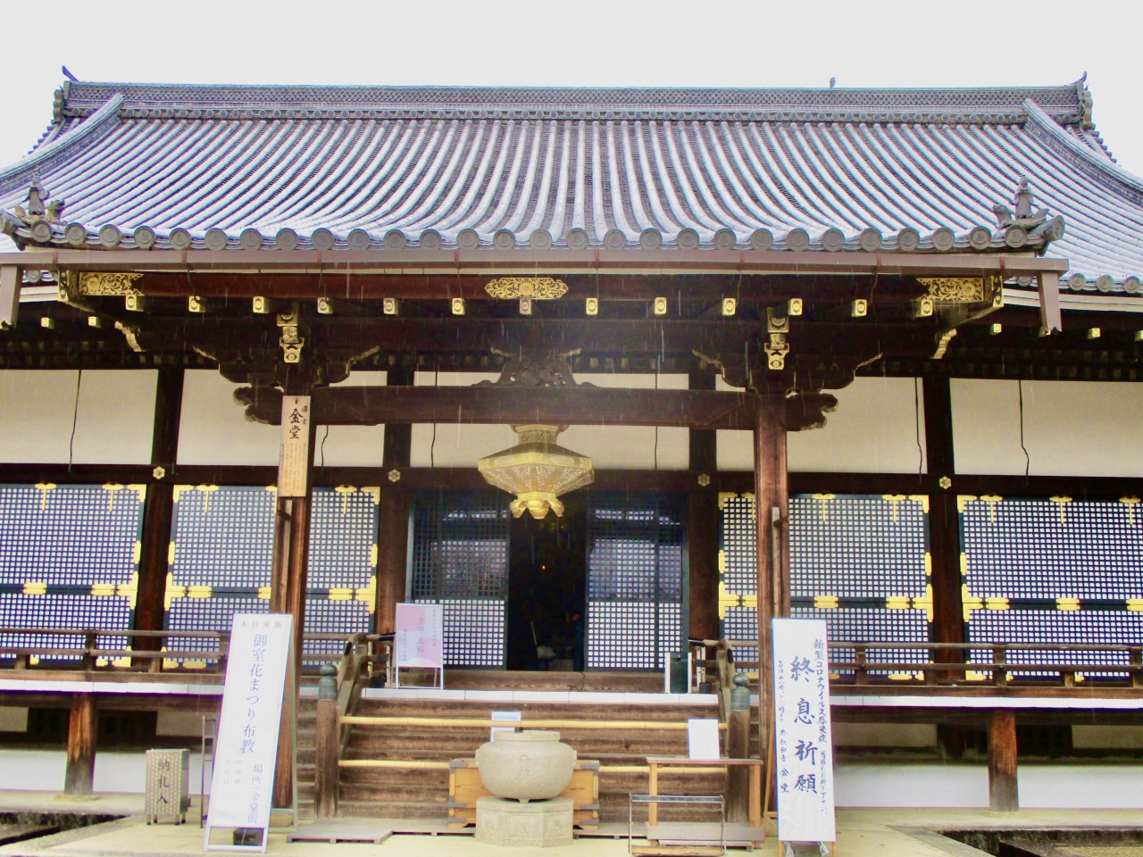 ネットで日時を予約したのですが、行ってみると、なんのチェックもなく、お金さえ払えば誰でも見れたようでした。金堂は御所の紫宸殿を移築したもので、桃山時代の宮殿建築を伝える貴重な建物だそうです。外でお話を聞くこともできました。