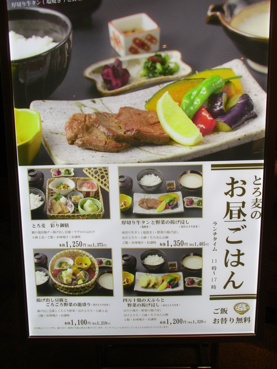 ご飯ととろろのお店ということで、立ち寄りました。ランチタイムメニューを選べば、私の好きな厚切り牛タンも結構安く食べられました。彩りといい、メニューといい、私のようなシニアの女性に嬉しいお店だと思いました。