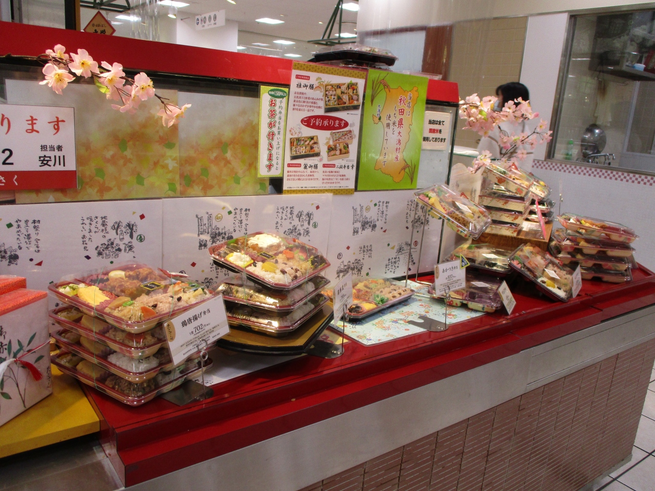 我が家の近くのスーパーにも入っていますが、そちらに比べ、こちらの店舗はデパ地下だけに高級感もあり、お弁当の種類も沢山あって、季節感のある彩りの綺麗なお弁当が揃っていました。焼き鳥の三和の近くにありました。