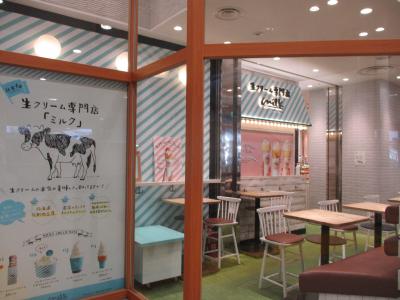 久しぶりに立川ルミネに立ち寄ったら、1階の出入り口に今まで見たことのない店舗が入っていて、気がつきました。壁には牛の絵が描かれていました。日本初の生クリーム専門店ということでした。ソフトクリームを頂きました。