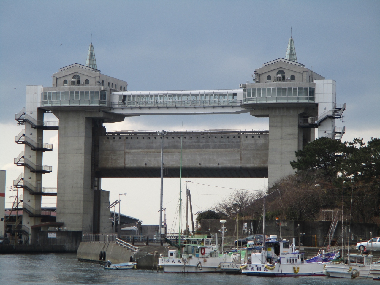地震による津波から市民を守る為に作られたんだそうです。それにしては大きいと感じました。地上30mの高さに展望回廊があって眺望を楽しめました。津波をシャットアウトする扉体は、幅40m、高さ9.3m、重量406tで日本最大級だそうです。