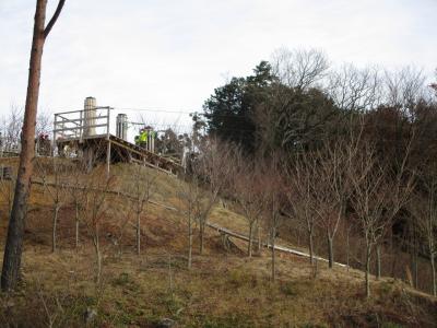 全長400mの日本一の長い吊橋を歩いていたら、橋の横に小高いところがあって、そこで、これからジップスライドを体験するための説明を受けている人たちがいるのが見えました。結構長く丁寧に説明しているみたいで、なかなかスタートしませんでした。