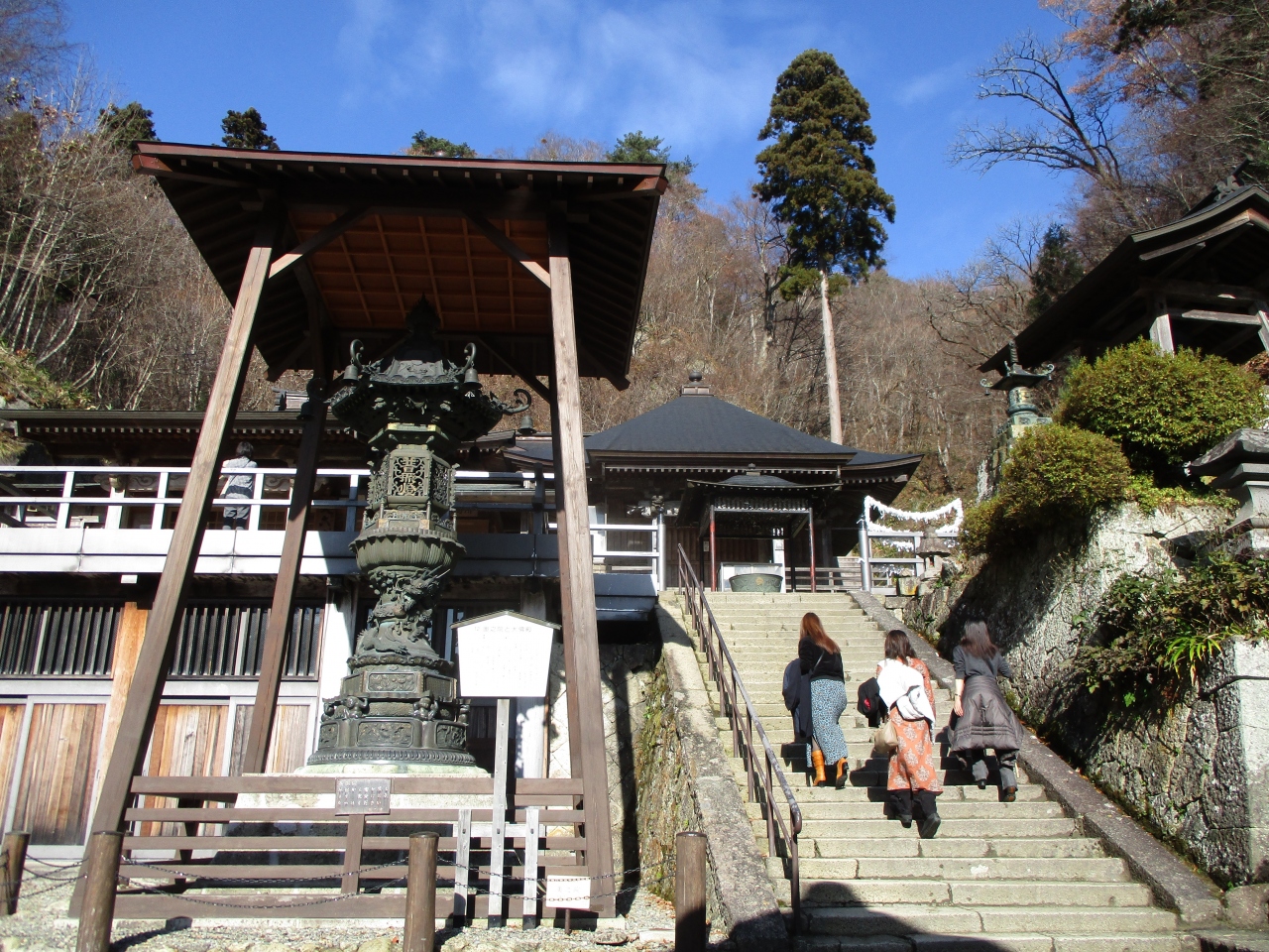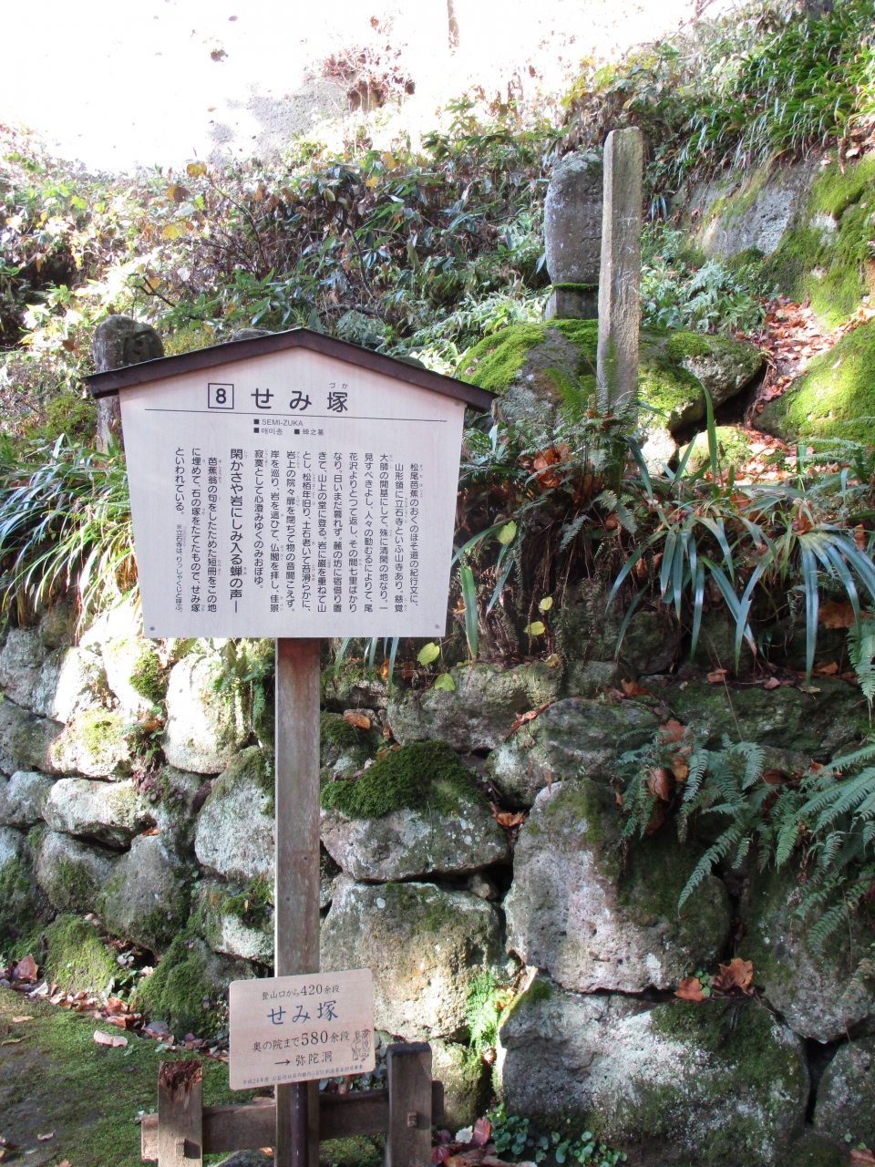 あの有名な句碑があり、芭蕉と芭蕉に随行した河合曾良の像がありました。真夏の本当に蝉が鳴いている季節に行ってみたかったのですが、12月でも好天に恵まれ、暑かったので、真夏だと奥の院まで辿りつけなかったかも。蝉より観光客の声や音の方がうるさいと思う。