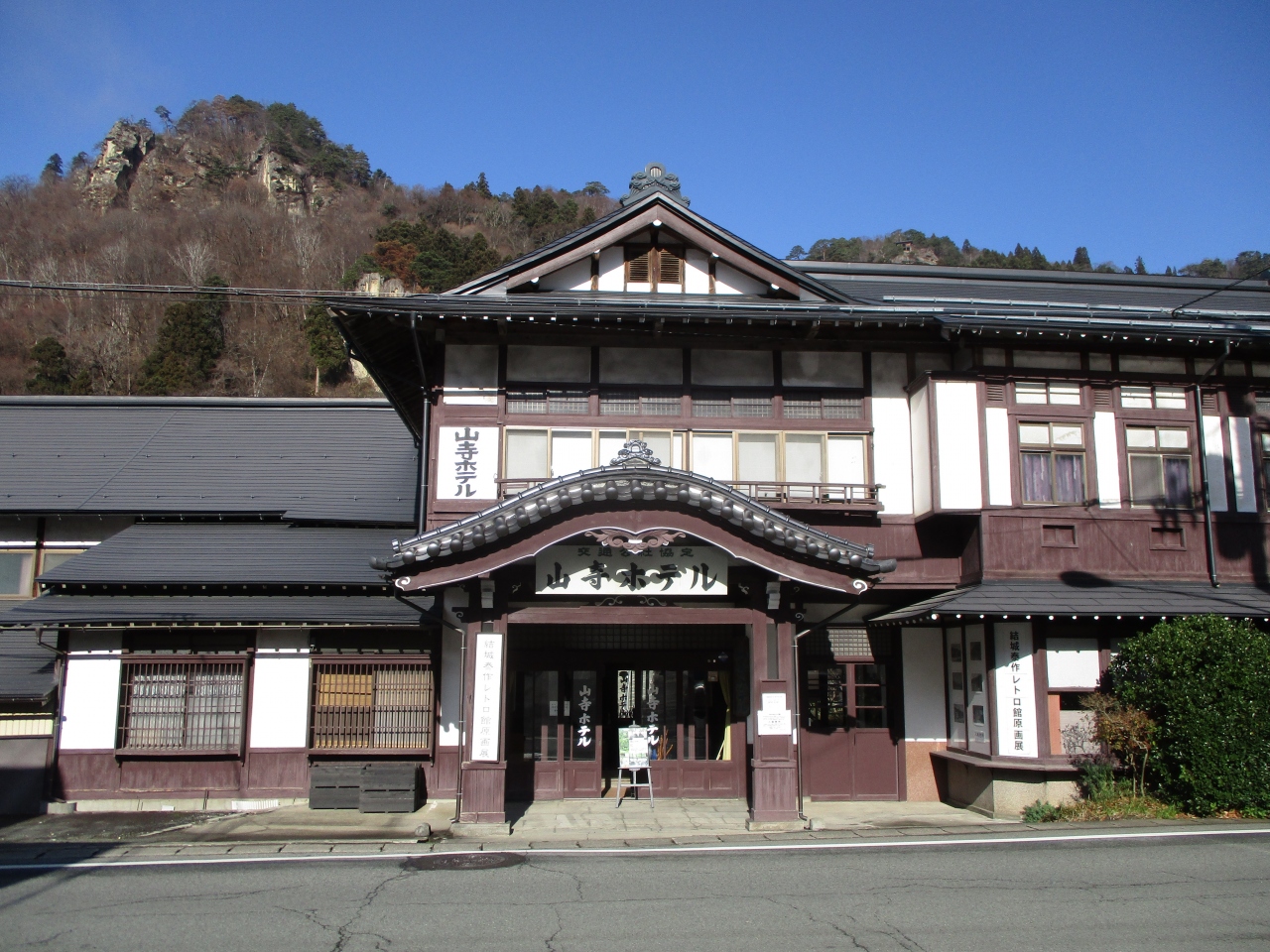 山寺駅から立石寺に向かって歩いていく途中、赤い橋を渡った正面に「山形ホテル」と書かれた素敵な建物がありました。こんなところにこんな素敵なホテルがあったのかと思ったら、なんと現在はホテルではなく、「やまがたレトロ館」として無料で公開していました。絵描きの家族にも見せたいです。