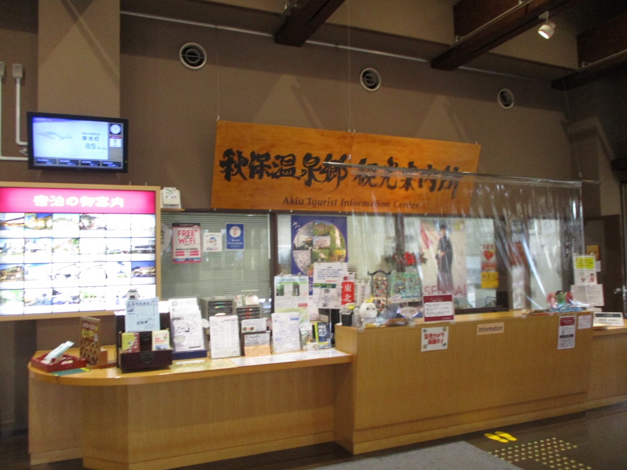 帰りの新幹線までの空いた時間を利用して、秋保温泉を往復し、里センターまで行って、磊々峡をみてみることにしたのですが、里センターに行ったら、中に観光案内所がありました。対して見所もないようですが、デスクは立派でした。