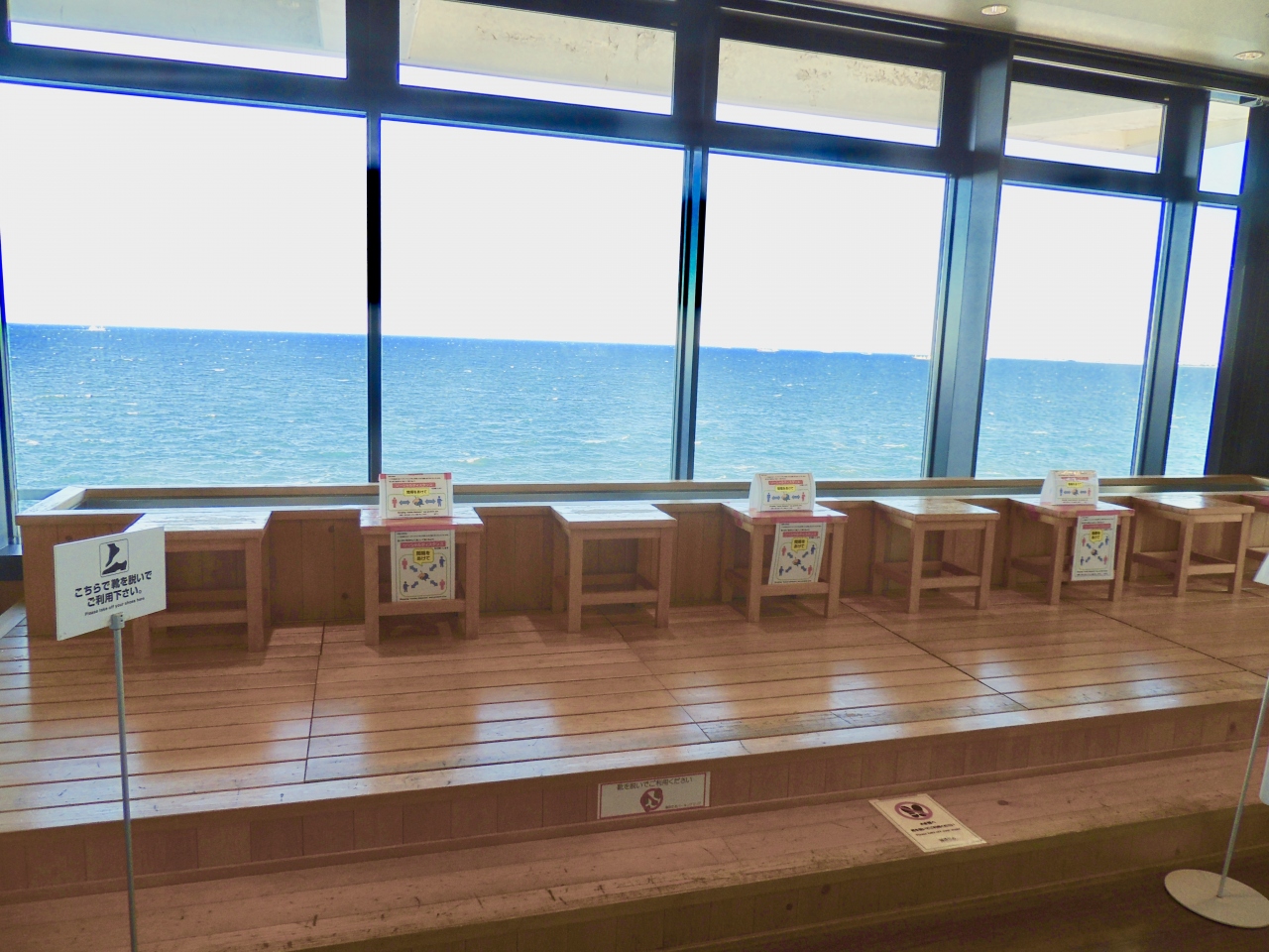 海の中にこんなに整った施設があるのかと改めて驚きました。コロナ禍でもマイカー族が沢山やってきていました。足湯もありましたが、ここは誰もいませんでした。シアターの「うみめがね」はコロナの影響で閉まっていました。