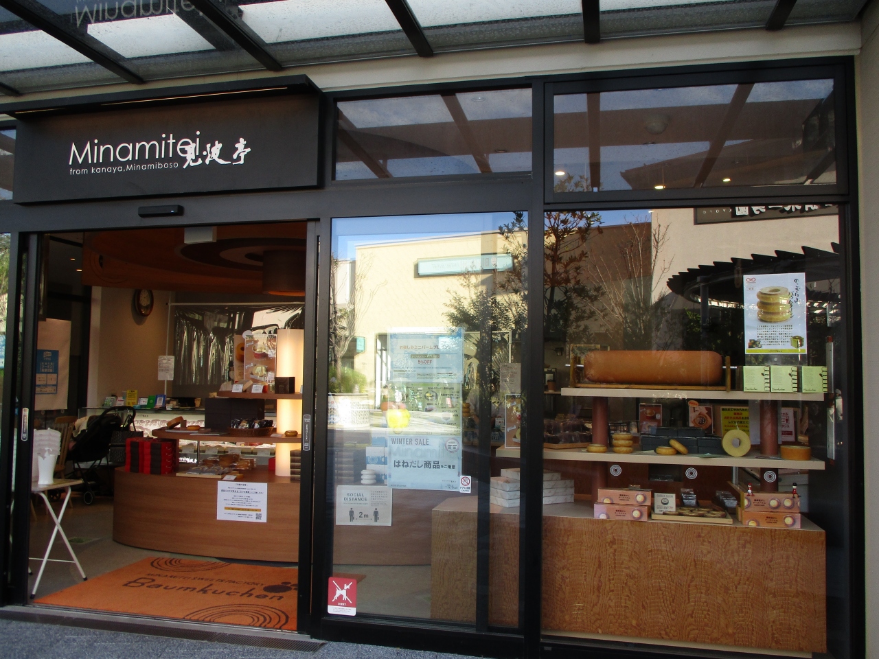 千葉のお菓子屋さんで、千葉の「のこぎり山」の名前がついた「のこぎり山バウムクーヘン」が有名で、ガーデンテラスのあたりにありました。ホワイトチョコをコーティングした冬季限定販売の「ホワイトバウム」もありました。