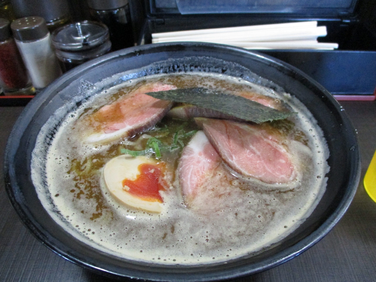 ランチタイムを逃してしまい、連れがラーメンを食べたいというので、唯一開いていたこの店に入り、連れが進める厚切りチャーシューのメニューを選びました。平日の14時半頃で、私たちの他に客は三人だけ。チャーシューってローストビーフのように生で食べるものですか?生まれて初めての経験でした。
