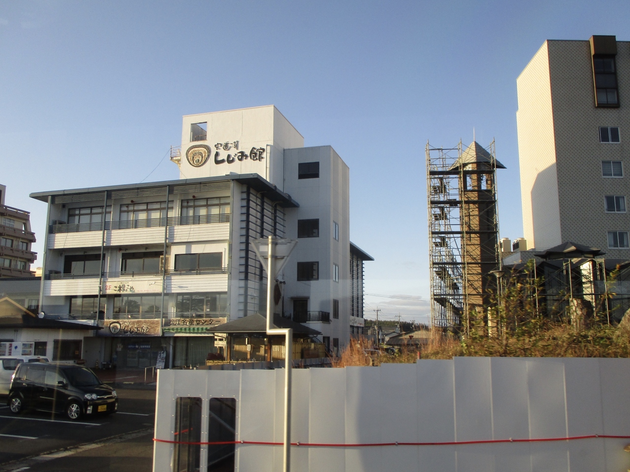 宍道湖と言ったらシジミなので、松江レイクラインバスを使って、松江しんじ湖温泉駅で降りて、足湯に立ち寄った後、向かったのですが、コロナの影響で、6月に閉館したのだそうです。建物はまだそのままありました。