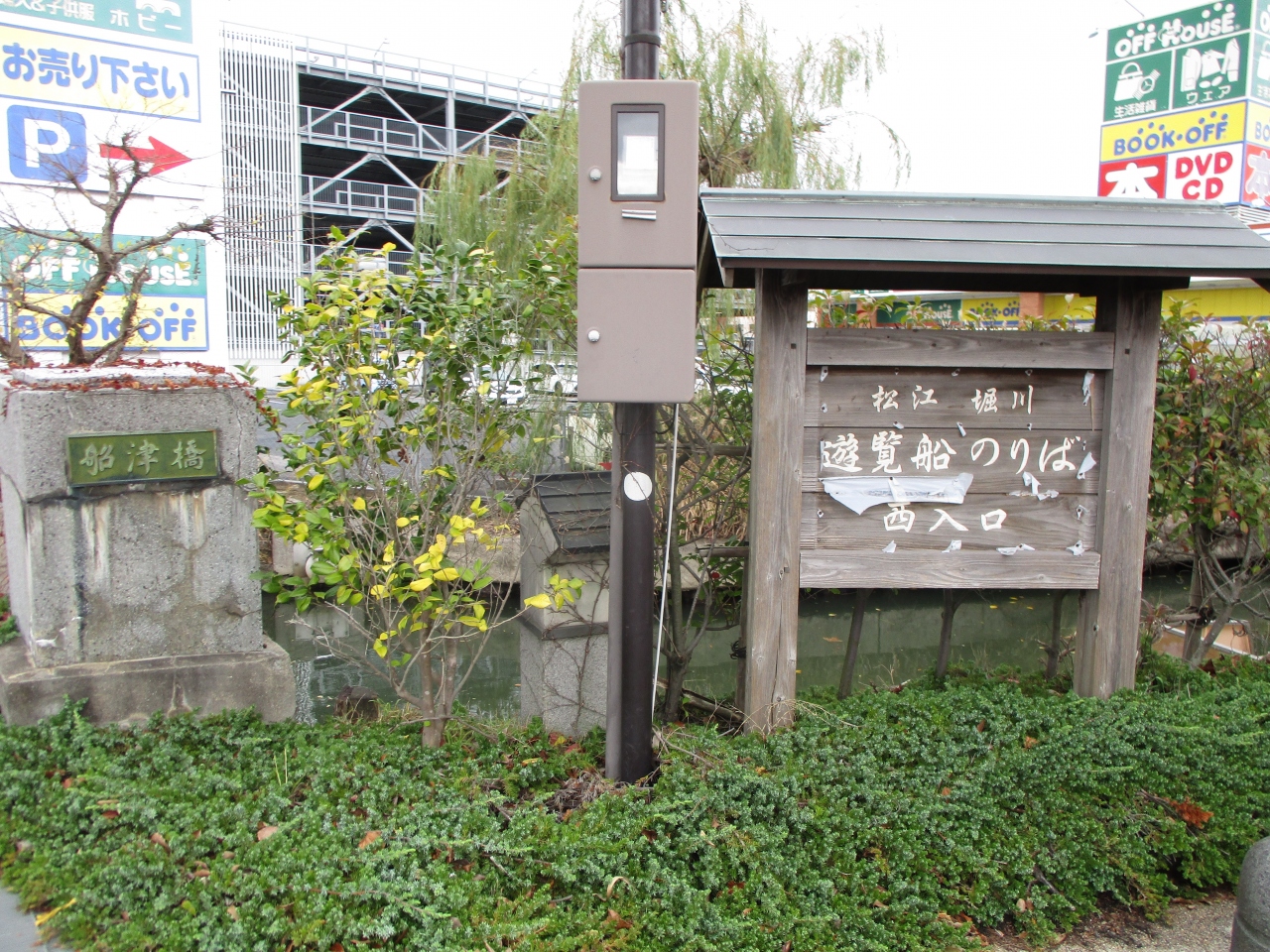 ぐるっと松江レイクラインバスに乗車して、松江城や武家屋敷などを観光した後、県立美術館へ行く途中に松江しんじ湖温泉駅で下車し、駅前の足湯に立ち寄ってみました。お湯の温度はぬるくて温まらないし、ホームレスみたいな方が入っていたので、早々に立ちました。