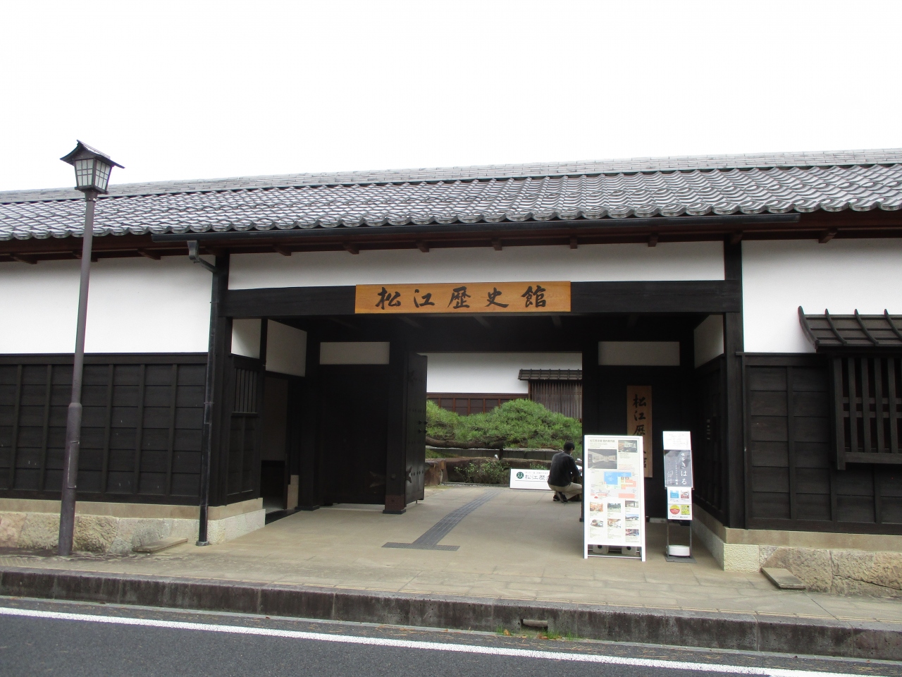 塩見縄手を歩いていて見つけました。国宝松江城の東側、堀川沿いに建つ武家屋敷風外観の博物館です。常設の展示室では、松江城と城下町の形成、松江藩の歴史・文化・城下の人々の暮らしなどを紹介していました。展示室以外は無料です。
