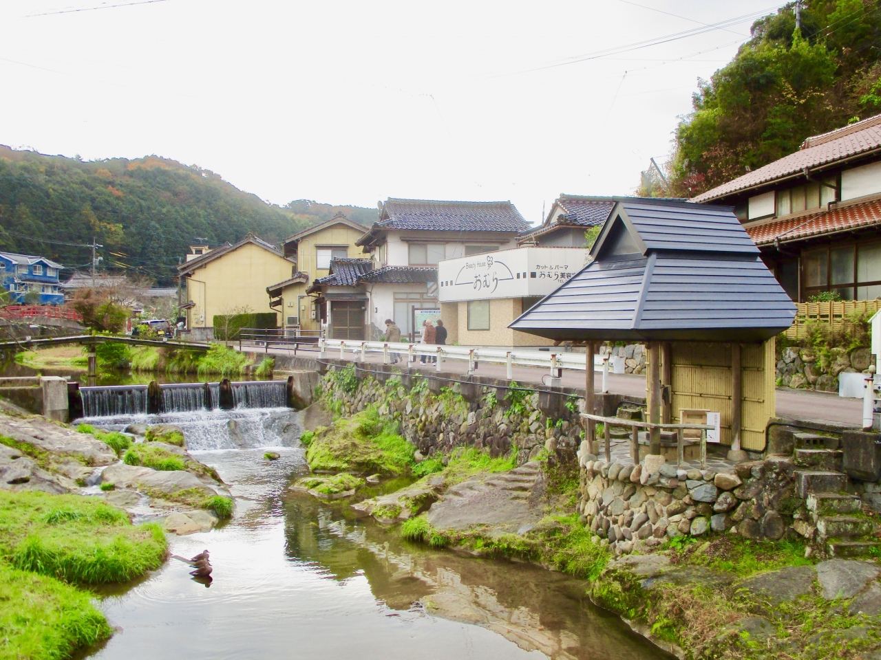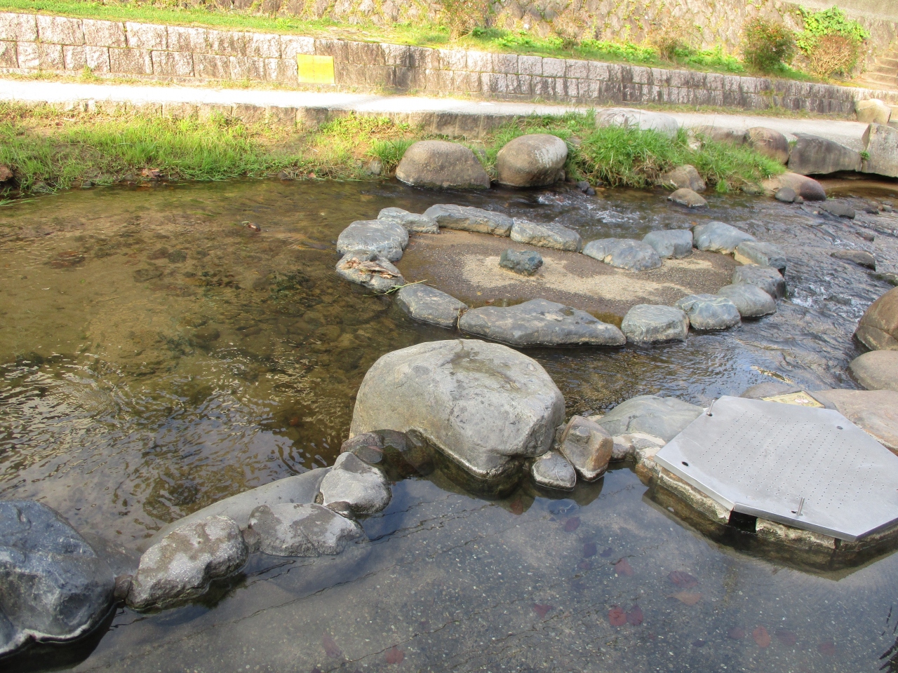 玉湯川のほとりにある井戸で、女子旅向きの観光スポットの一つです。川の鯉に餌をやって、恋を呼び寄せ、恋愛成就なんていったい誰が考えたのかと驚きましたが、次々に女子が訪れていて、正直さらに驚きました。私としては鯉は目に留まらず、3羽の鴨に目がとまりました。