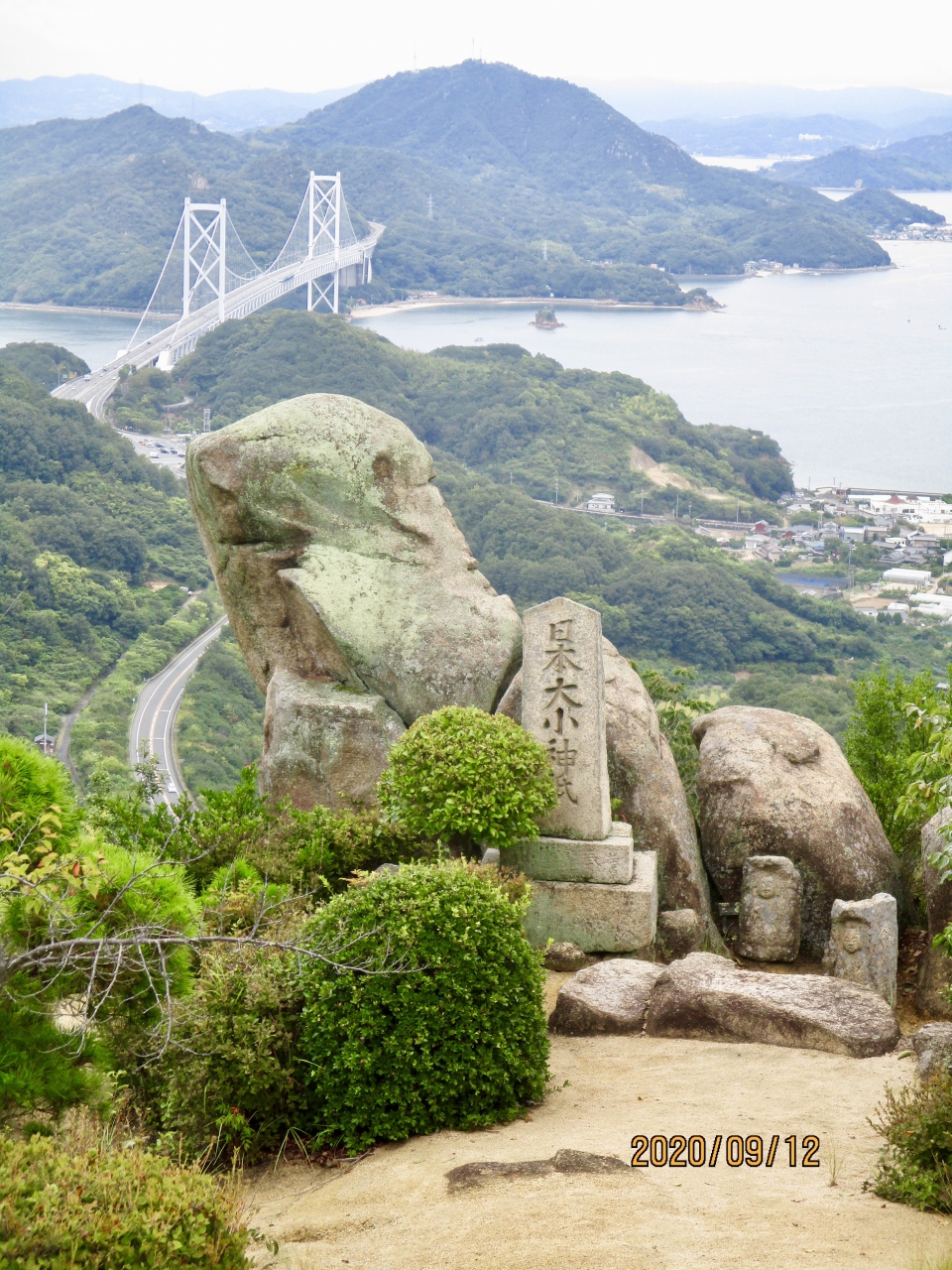 この橋の眺めは絶対白滝山山頂からがオススメです。山頂からだとゴリラ岩を手前にして、バックに因島大橋が入り、最高の眺めです。天候に恵まれたら絶景が拝めます。私はこの眺めが見たくて2度挑戦。2度目に叶いました。