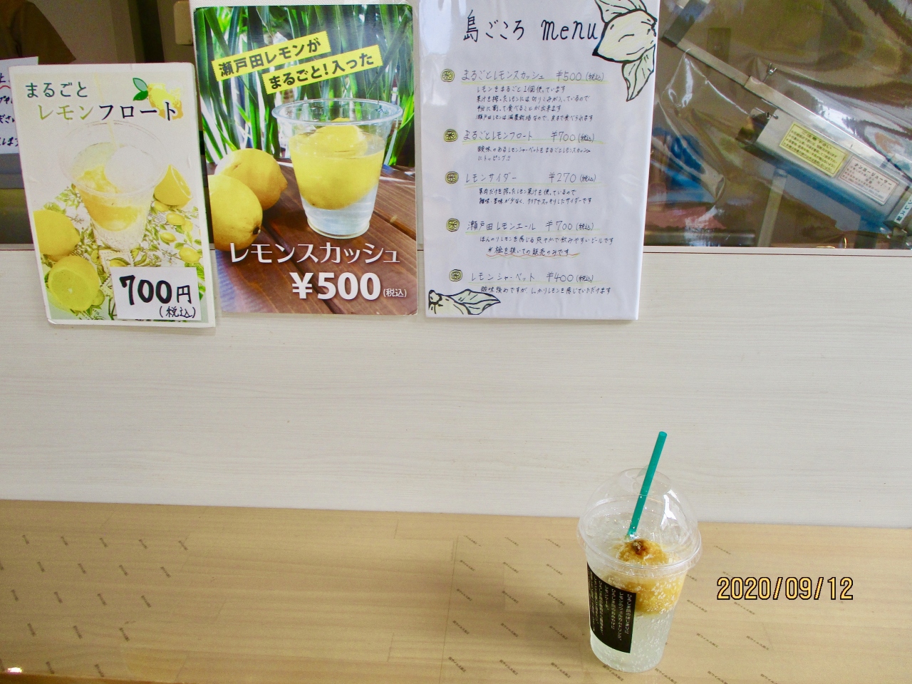 千光寺に行った帰りにたまたま見つけて立ち寄りました。物凄く暑い日で、ちょっと前にええもんやではっさくジュースを飲み干したばかりだったのですが、種類の違うレモンだからいいかと飲みました。イートインスペースもありました。