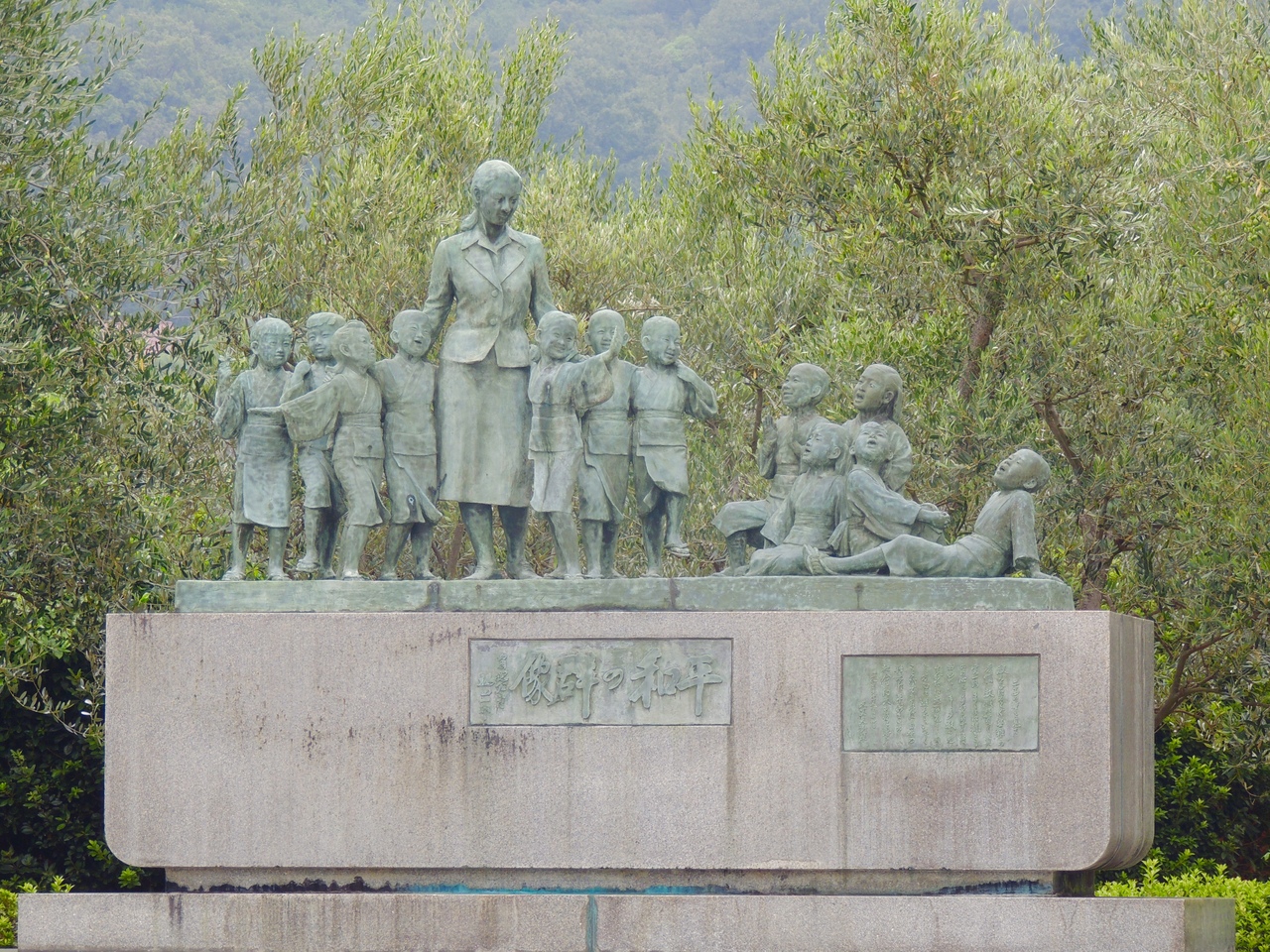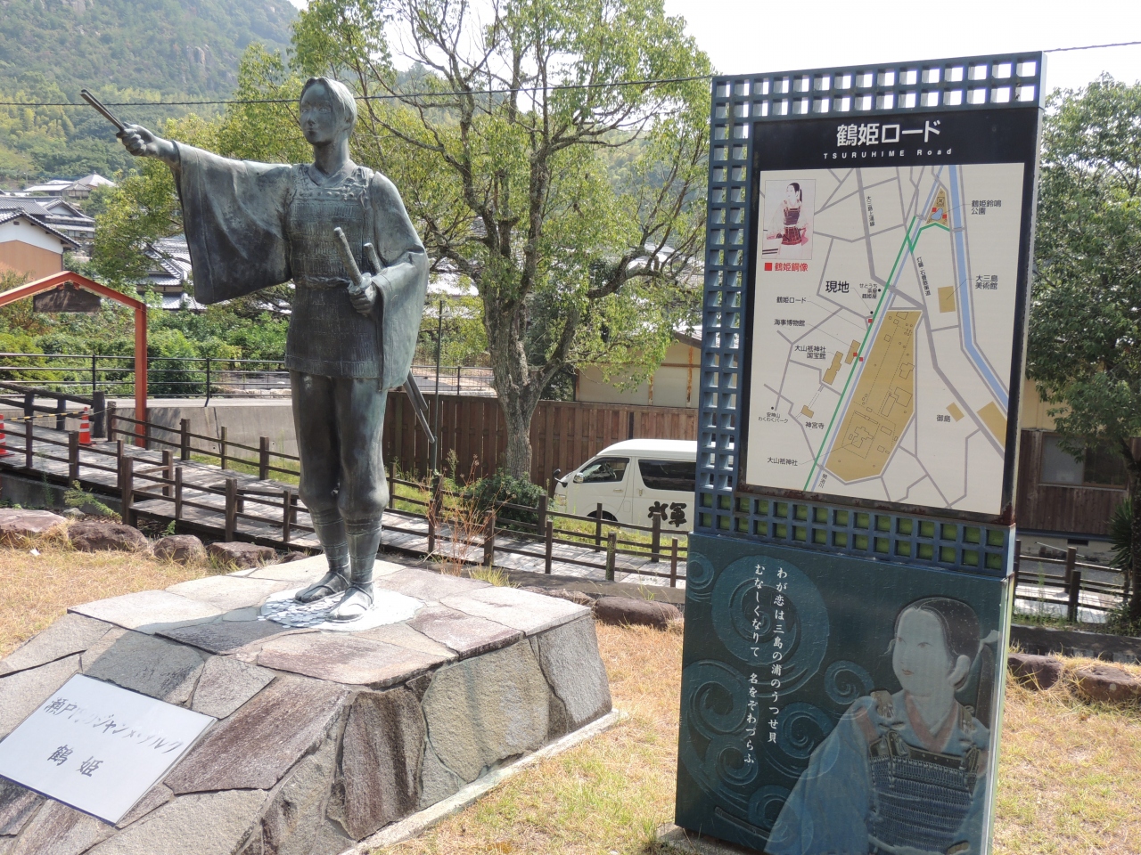 大山祇神社周辺を散策していたら、ここから鶴姫公園までの道があり、鶴姫の像がありました。公園には水琴窟があって悲しい音が聞こえてきました。愛する恋人を追って海に消えたという18歳のうら若き女の子の話を知り、心が痛みました。