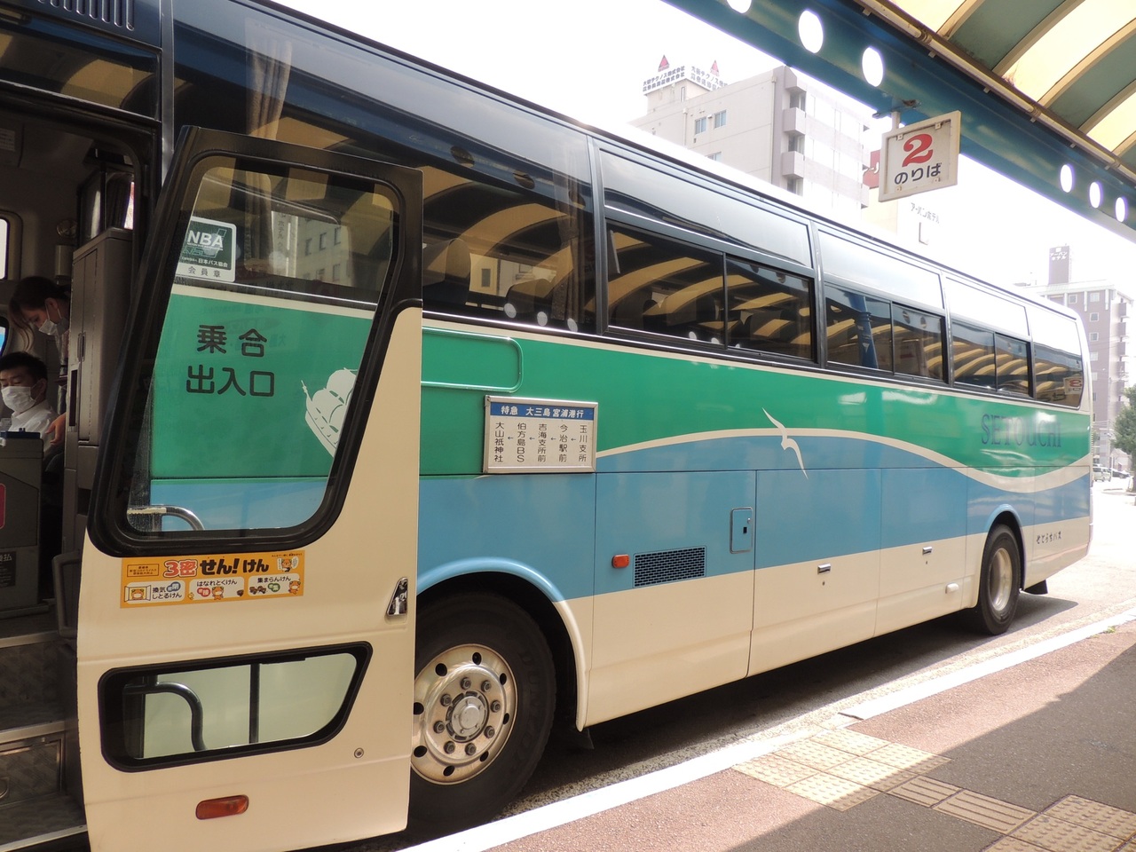今治桟橋、今治駅からしまなみ海道の高速道路を通り、福山駅まで行く乗り合いバスです。生口島では乗降できますが、大三島バスストップまでは、降車ができず、因島から福山までは、降車しかできませんでした。この条件に合わない場合は、他のバスを利用する必要があります。