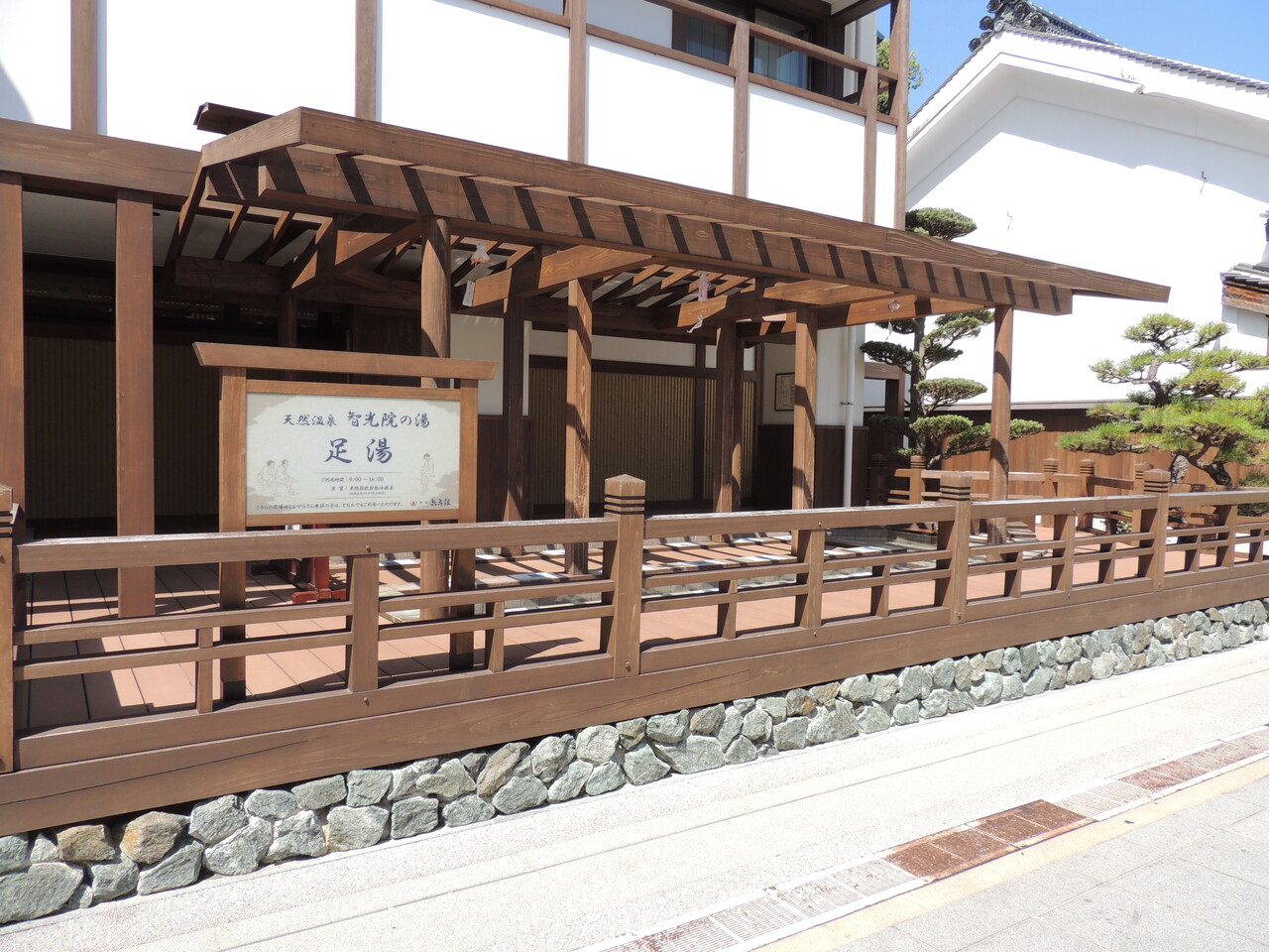 金比羅さんの表参道の入り口近くに見つけました。もともと国の登録有形文化財に指定されていた老舗旅館の敷島館ですが、昨年9月にすっかり綺麗になってオープンしています。通り側に足湯があったので、帰りに立ち寄りました。足拭きタオルの自動販売機もありました。