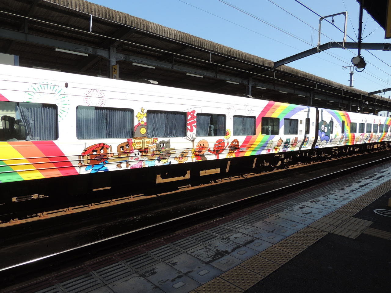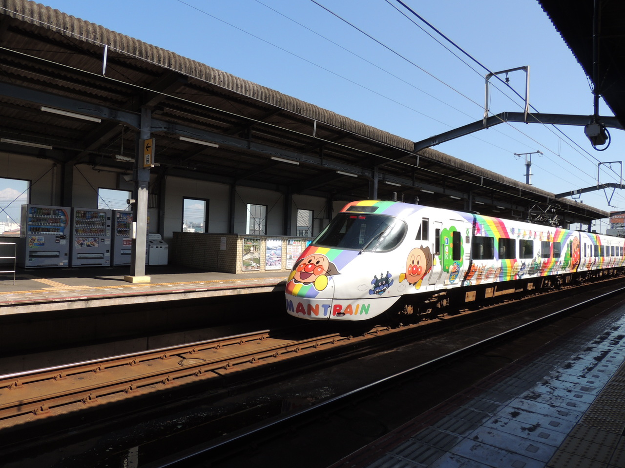 今回実際に乗車したのは、栗林公園東門から10分くらい歩いて、栗林公園駅から瓦町駅までの一駅でした。スイカも使えました。玉藻公園の高松城跡を見学していたら、堀のすぐ向こうにホームが見えました。毎日利用している方は毎日城跡が見られて羨ましい。